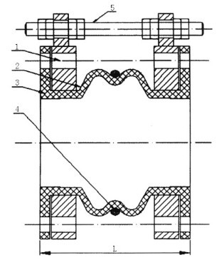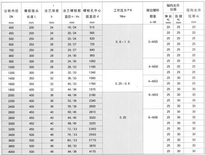 5、 當橡膠接頭在水(油)泵出口近距離或開停頻繁條件下使用時,為減少橡膠接頭長度的拉伸和壓縮過大而給泵和管道帶來的影響,應在法蘭兩端增加限位裝置。